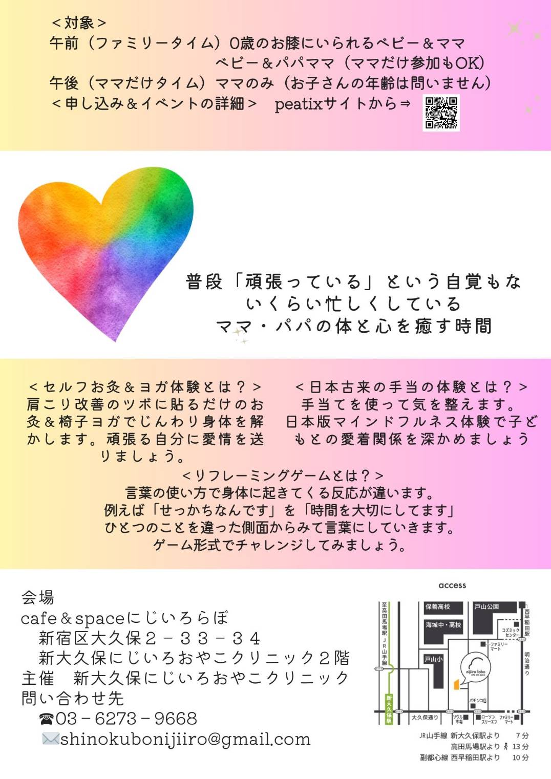 内容: 日本古来の手当て、セルフお灸&ヨガ、捉え方の幅をひろげるリフレーミングの体験