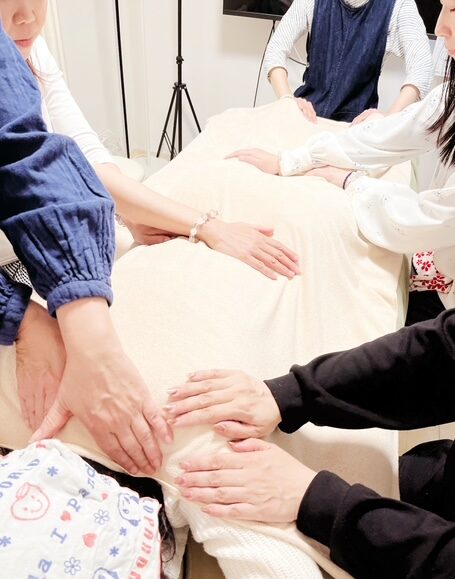 一人に対して何人もの手が当てられます❤